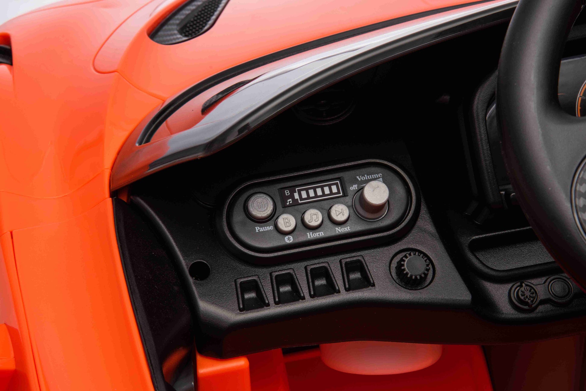 - Realistic features include a horn, music via Bluetooth,bright rear lights, bright headlights and two Openable doors